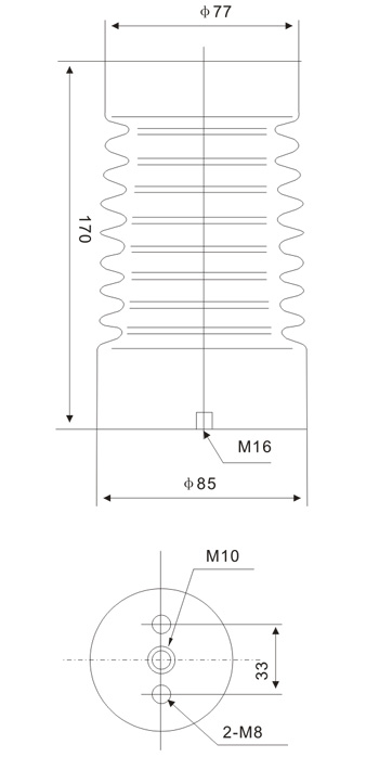 ZJ-10Q/85×170 支柱絕緣子(160、170高)采用環(huán)氧樹(shù)脂澆注成型,耐污穢及潮濕,無(wú)需特別維護(hù),只需定期清除表面污物,兩端有用于安裝的螺紋孔。