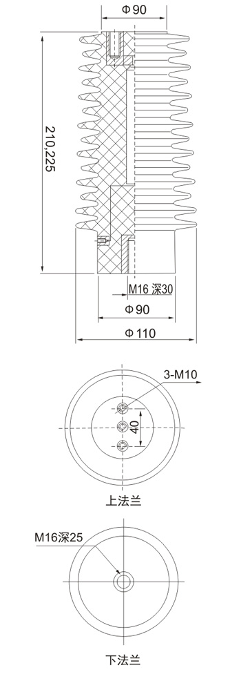 ZJ-24Q/110×190、210、225支柱絕緣子采用環(huán)氧樹脂澆注成型,耐污穢及潮濕,無需特別維護,只需定期清除表面污物,兩端有用于安裝的螺紋孔。