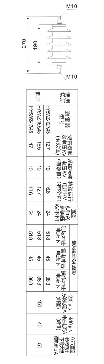 HY5WZ-10KV 避雷器是用來保護電力系統(tǒng)中各種電器設(shè)備免受過電壓損壞的電器產(chǎn)品,具有良好保護性能。因為氧化鋅閥片的非線性伏安特性十分優(yōu)良,使得在正常工作電壓下僅有幾百微安的電流通過,便于設(shè)計成無間隙結(jié)構(gòu),使其具備保護性能好、重量輕、尺寸小的特征。當過電壓侵入時,流過閥片的電流迅速增大,同時限制了過電壓的幅值,釋放了過電壓的能量,此后氧化鋅閥片又恢復(fù)高阻狀態(tài),使電力系統(tǒng)正常工作。