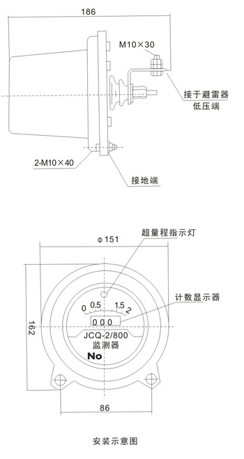 JS-8計(jì)數(shù)器、JCQ監(jiān)測(cè)器是對(duì)過(guò)電壓保護(hù)器工作狀況進(jìn)行實(shí)時(shí)及累計(jì)計(jì)數(shù)的裝置。通過(guò)本產(chǎn)品可以詳細(xì)監(jiān)視及所保護(hù)線路的狀況,預(yù)知事故前異常情況,達(dá)到分析異常動(dòng)作原因,預(yù)防事故發(fā)生的作用。本產(chǎn)品適用于5KA系統(tǒng)35KV及以下電壓等級(jí)的避雷器。
