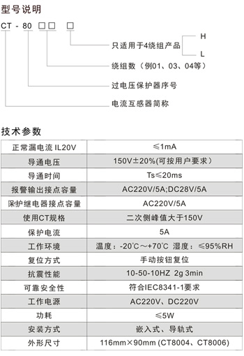 CT-8004電流互感器過電壓保護器在電力系統(tǒng)中,電流互感器(CT乯應(yīng)用于一次電流的測量與控制,正常工作時互感器二次側(cè)處于近似短路狀態(tài),輸出電壓很低。在運行中如果二次繞組開路或一次繞組流過異常電流(如雷電流、諧振過電流、電容充電電流、電感啟動電流等),都會在二次側(cè)產(chǎn)生數(shù)千伏甚至上萬伏的過電壓。不僅給二次系統(tǒng)絕緣造成危害,還會使互感器過激而燒損,甚至危及工作人員的生命安全。