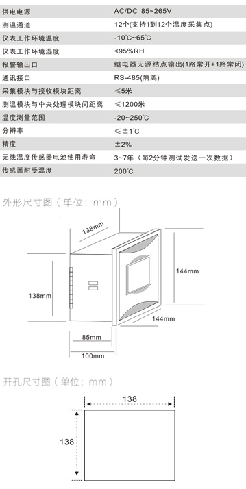 FIKW3000電氣接點(diǎn)溫度在線監(jiān)測(cè)裝置是我公司借鑒國(guó)內(nèi)外同類(lèi)產(chǎn)品為保證電力電器良好的運(yùn)行環(huán)境,針對(duì)電氣設(shè)備接點(diǎn)部位由于材料老化、接觸不良、電流過(guò)載等因素引起的溫升過(guò)高的故障隱患,自行研制開(kāi)發(fā)的能夠及時(shí)監(jiān)測(cè)到電氣接點(diǎn)溫度的在線監(jiān)測(cè)裝置。該產(chǎn)品采用低功耗設(shè)計(jì)、無(wú)線測(cè)溫等技術(shù),具有隔離徹底、安裝方便、抗干擾能力強(qiáng)、工作可靠等特點(diǎn),能很好的解決高電壓狀態(tài)下的溫度測(cè)量問(wèn)題。該產(chǎn)品主要應(yīng)用于高壓開(kāi)關(guān)柜觸頭及接點(diǎn)、刀閘開(kāi)關(guān)、高壓電纜中間頭、干式變壓器、低壓大電流柜等設(shè)備的溫度監(jiān)測(cè)。保障自動(dòng)化作業(yè)的高效、安全運(yùn)行。