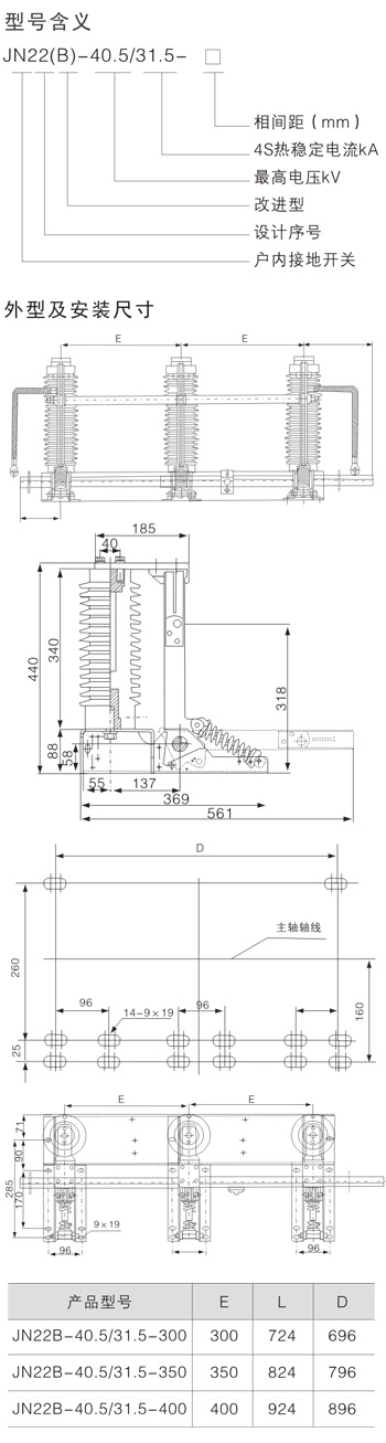JN22(B)-40.5/31.5 型戶內(nèi)高壓接地開(kāi)關(guān)其性能符合GB1985-89《交流高壓隔壁離開(kāi)關(guān)和接地開(kāi)關(guān)》及IEC129的要求,適用于12千伏及以下交流50Hz的電力系統(tǒng)中,可與各種型號(hào)高壓開(kāi)關(guān)柜配套使用,作為接地保護(hù)用。